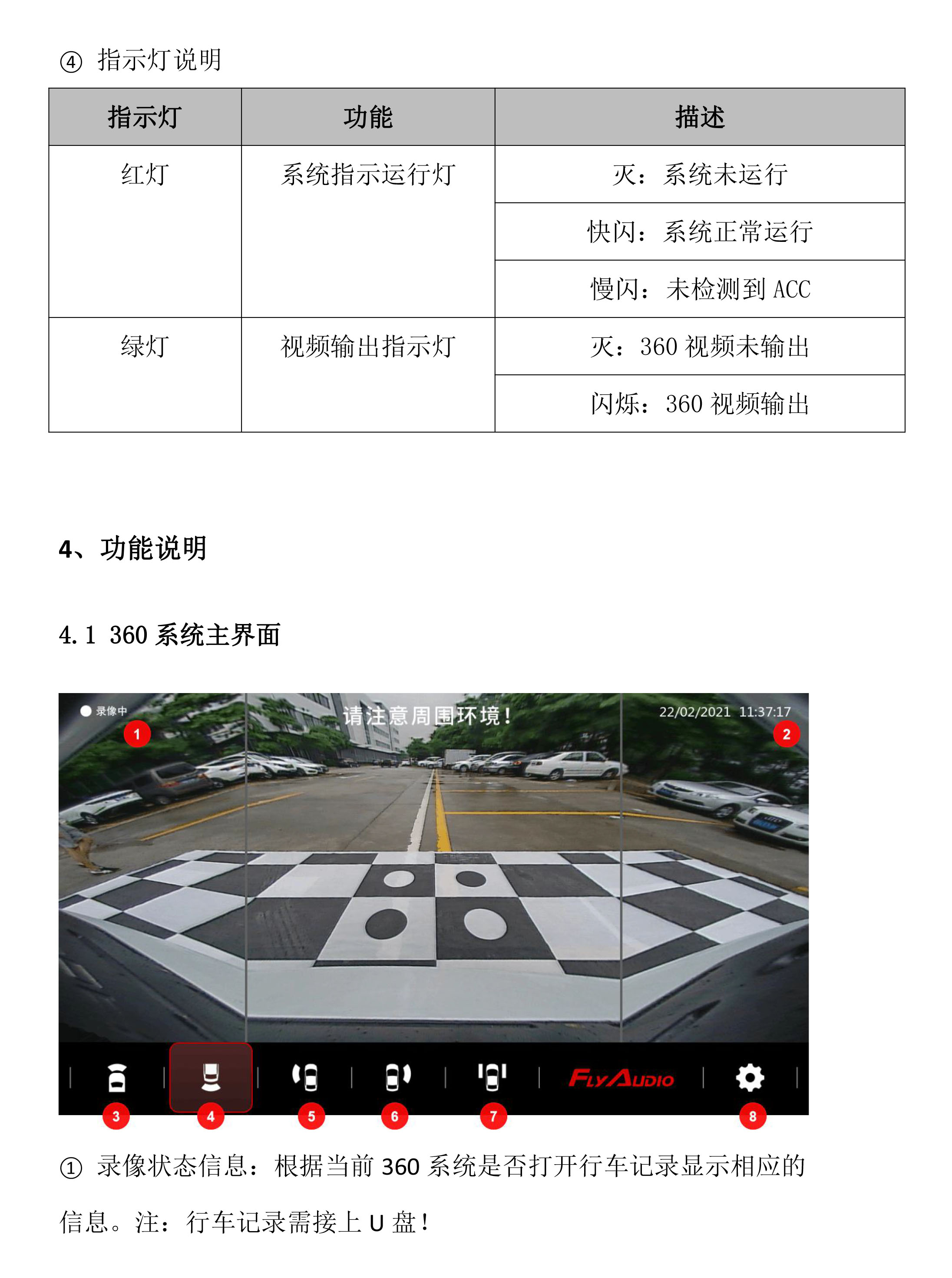 Flyaudio 360°全景行车辅助系统——V2使用说明书